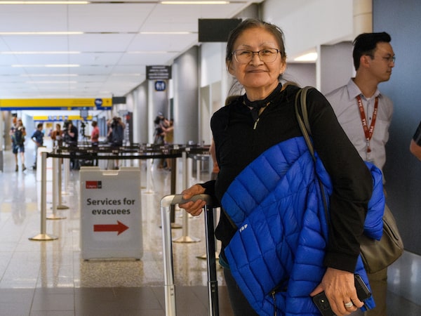 Beatrice Bernhardt, Yellowknife resident since 2013, in Calgary's airport after evacuating.Jude Brocke/The Globe and Mail