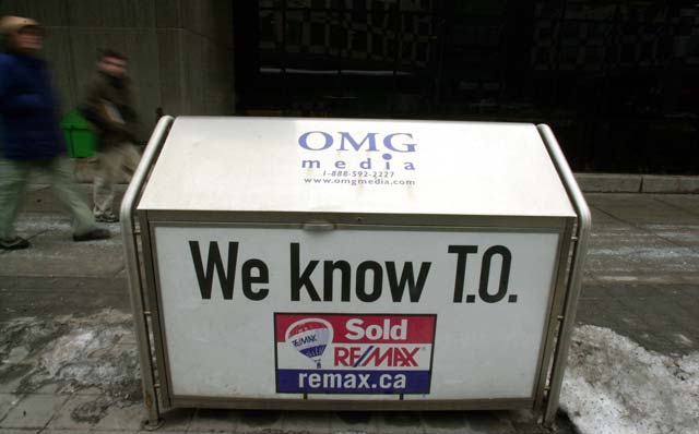In 1999, Toronto contracted a start-up advertising company, OMG Media, to erect large metal waste-and-recycling bins across the city. OMG supplied the bins for free, with a catch: They had to bear ads sold by OMG – which would keep 90 per cent of the revenue generated; the city would get the other 10 per cent, plus $15 a year per bin.