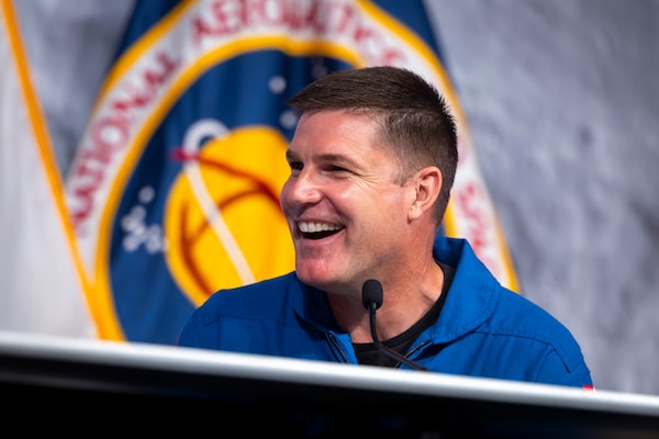 Col. Jeremy Hansen during an Artemis II media briefing at Johnson Space Center in Houston, on Wednesday.Annie Mulligan/The Globe and Mail