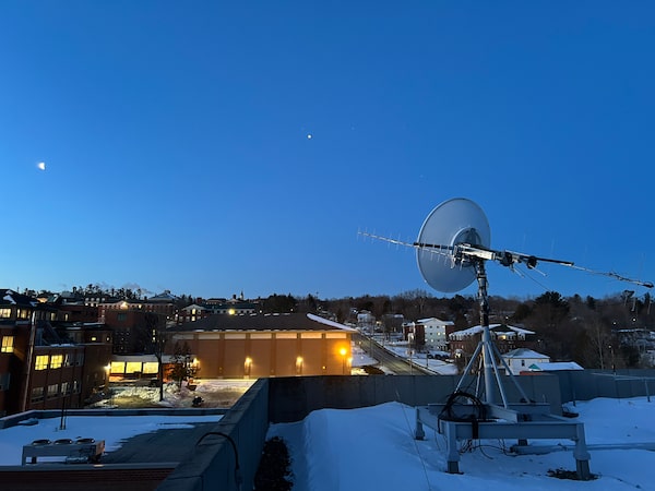 The receiver dish at the University of New Brunswick campus in Fredericton used to pick up the radio signal from the Artemis II spacecraft.Brent Petersen/Supplied