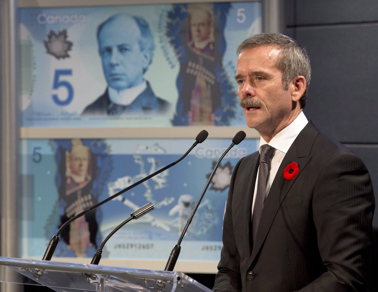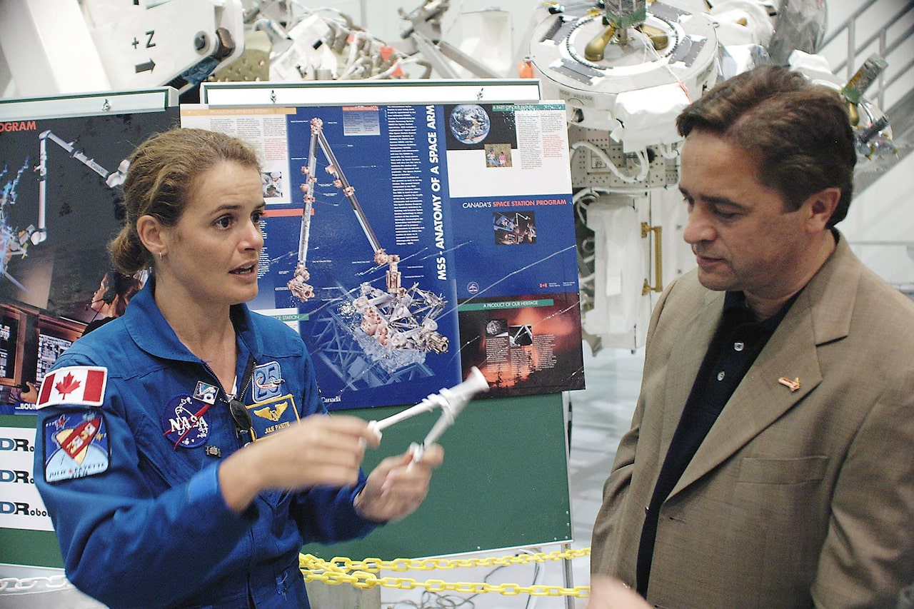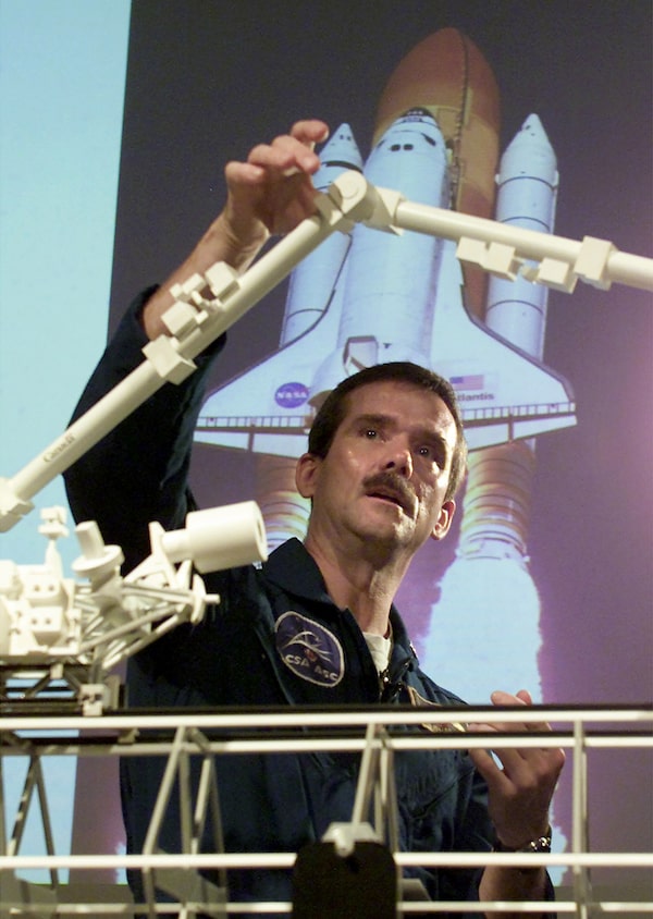 Canadian Astronaut Chris Hadfield conducts a briefing on the the new-generation Canadian robotic arm, Canadarm2, in Toronto on Oct. 16, 2000.FRANK GUNN/The Canadian Press