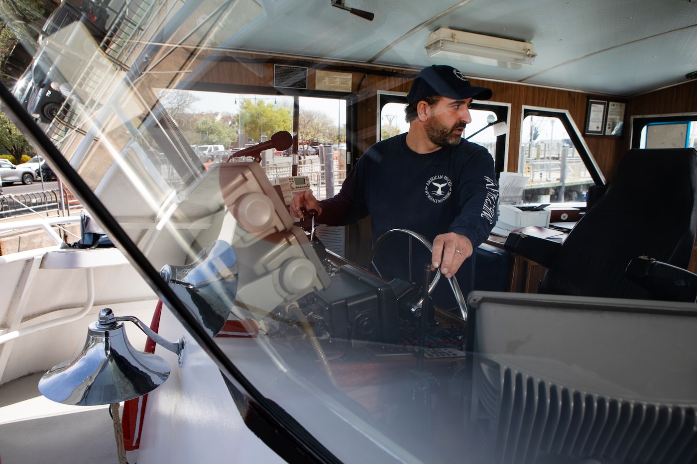 “We know most of the folks on boats, whether they’re fishing commercially or recreationally, so we’re on a radio, talking to each other. We can let everyone know – including vessel traffic, so that loops in the commercial ships in the area – when we see a whale, if it’s close to a shipping area or shipping lanes,” he says, speaking from the wheelhouse of a cruise boat anchored in Brooklyn.