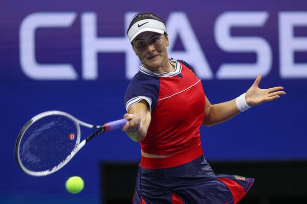 Bianca Andreescu returns the ball against Maria Sakkari during her round of 16 match of the U.S. Open on Sept. 6, 2021.Matthew Stockman/Getty Images