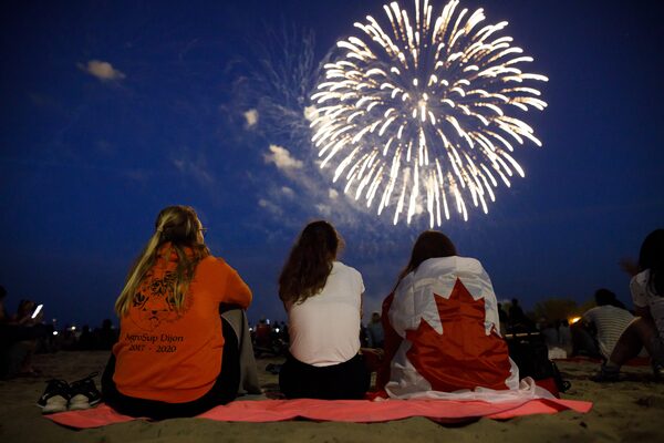 People watch fireworks fly over Ashbridges Bay during Canada Day festivities on July 1, 2019 in Toronto.Cole Burston/Getty Images