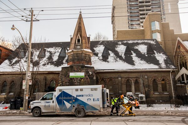 Paramedics pick up a woman from Margaret's - a drop-in centre in East Toronto. Multiple clients The Globe and Mail spoke to said overdoses are common at the over-capacity drop-ins like Margaret's. The city of Toronto has been under pressure in recent weeks create more shelter space and warming centres in the city to help homeless people deal with the cold..Jesse Winter/For The Globe and Mail