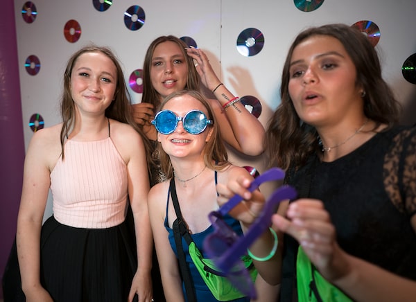 Seventeen-year-old Hailey Dobbins, left, and her sister Courtney, take a break from the dance floor during prom night at the Hospital for Sick Children in Toronto.J.P. MOCZULSKI/The Globe and Mail