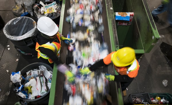 Conveyor belts move materials that will be sorted manually at the Canada Fibers' recycling facility in Toronto.Fred Lum/The Globe and Mail