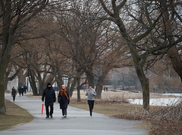 People walk along the Martin Goodman Trail as it passes through Sir Casimir Gzowski Park in Toronto on March 17, 2020.Fred Lum/The Globe and Mail