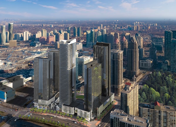 The Mississauga scheme is in early days. But the latest masterplan and conceptual drawings, by Hariri Pontarini Architects, capture today’s recipe for suburban intensification – mixed up, light on cars and walkable. They also suggest how much work it will take to deliver.