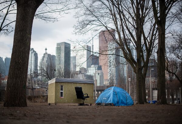 Shelters stand at an encampment in downtown Toronto's Moss Park on Jan. 21, 2021.Fred Lum/The Globe and Mail
