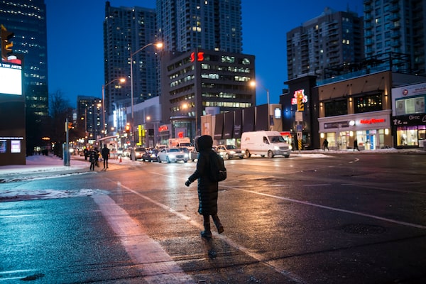 A pedestrian walks on Yonge Street, north of Sheppard Ave., in Toronto, on Jan. 17, 2018.Christopher Katsarov/For The Globe and Mail