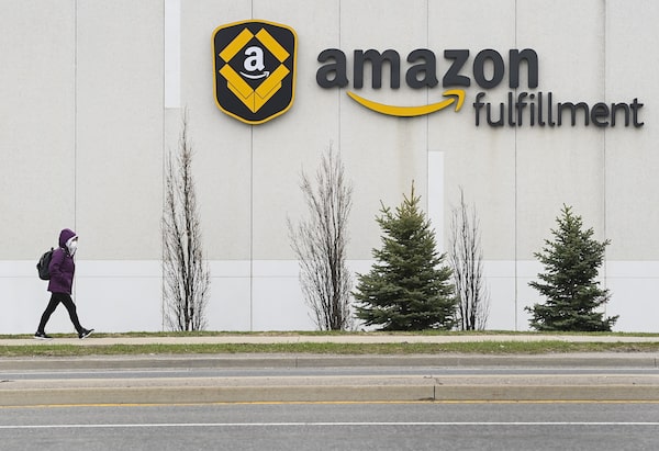 A person walks past an Amazon Fulfillment Centre in Brampton, Ont., on April 20, 2021.Nathan Denette/The Canadian Press