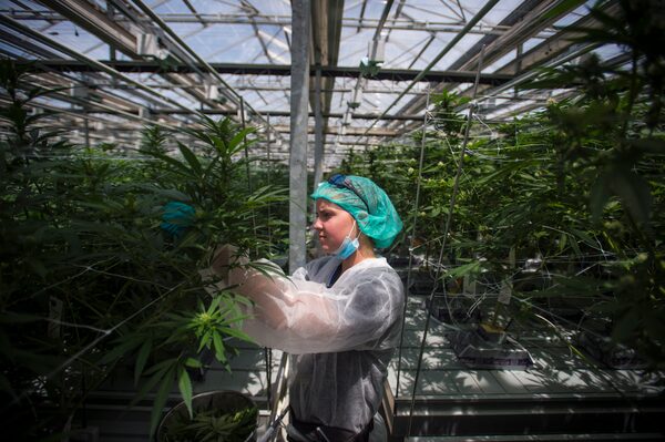 Grow Technician Rebecca Canplin trims cannabis plants during the grand opening event for the CannTrust Niagara Greenhouse Facility in Fenwick, Ont., June 26, 2018.Tijana Martin/The Canadian Press
