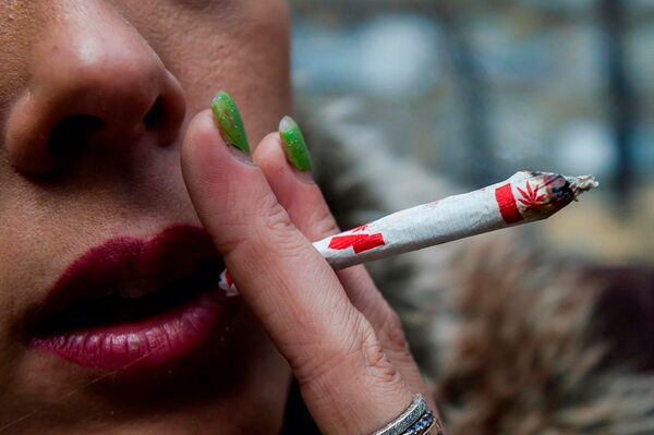 A woman smokes a joint at a legalized marijuana event in Toronto on Oct. 17, 2018.The Canadian Press