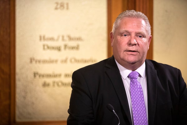Premier Doug Ford speaks to the media outside of his office, in the Ontario Legislature, in Toronto, on Nov. 21, 2019.Chris Young/The Canadian Press