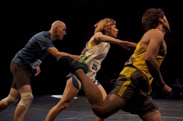 In her review, she describes the dance production as a "political play" that features "Jewish performers running around in a circle and calling out platitudes about their respective struggles. I might be tempted to complain [that the play] offers an egregiously one-sided view of Israel's wounds."