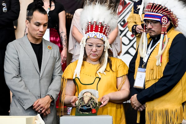 She said five items – among 62 repatriated – arrived back in Canada in December, 2025, and have been stored until now. Forty-seven other items were to be shared in a private ceremony later on Tuesday led by elders.