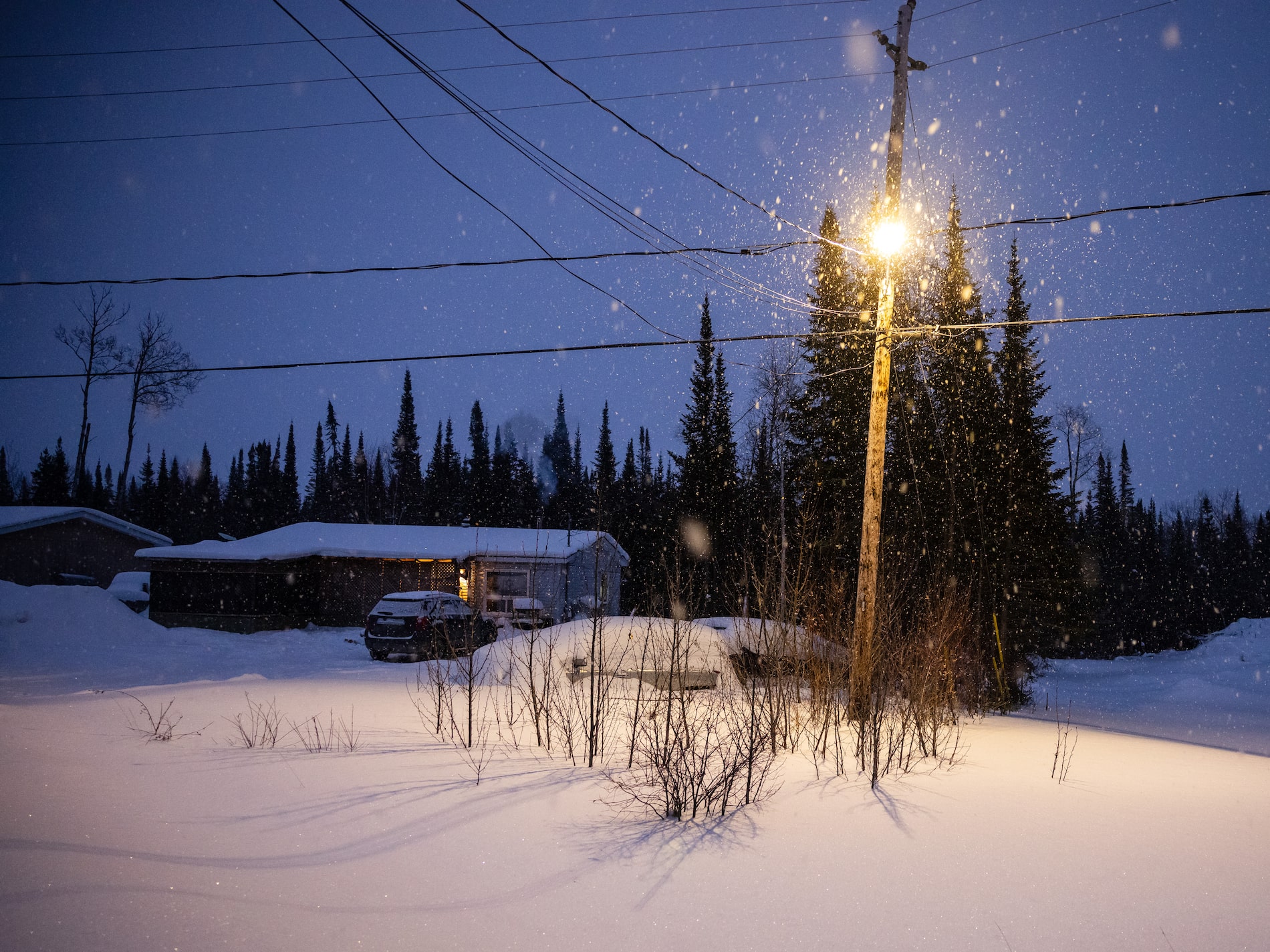 Lisa would like new boots, a better band house, maybe a less dented car. Life in Keewaywin feels a universe away from the rest of the world, she says. “Even if we got lots of money, I’d probably stay here. I’m used to it.”
