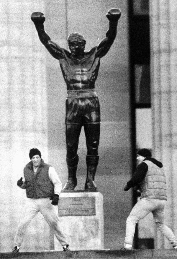 Actor Sylvester Stallone gifted a statue to the museum when making Rocky III: Here, he and co-star Tommy Morrison are re-enacting a scene from Rocky V underneath it in 1990.Chris Gardner/AP