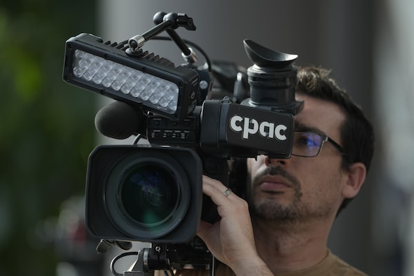 A Cable Public Affairs Channel (CPAC) cameraman works at an event in Ottawa on Tuesday.Adrian Wyld/The Canadian Press