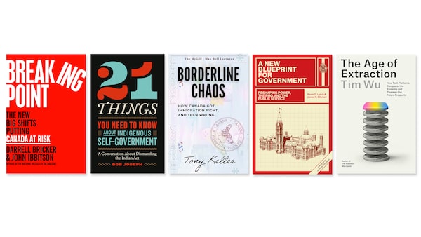 The other nominated books are 21 Things You Need to Know About Indigenous Self-Government: A Conversation About Dismantling the Indian Act, by Bob Joseph (published by Page Two); A New Blueprint for Government: Reshaping Power, The PMO, and the Public Service, by Kevin G. Lynch and James R. Mitchell (University of Regina Press); and The Age of Extraction: How Tech Platforms Conquered the Economy and Threaten Our Future Prosperity, by Tim Wu (Alfred A. Knopf).