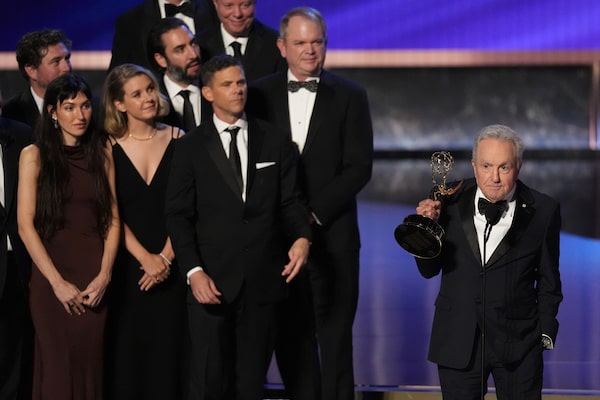 Lorne Michaels, right, and the cast and crew of SNL50: The Anniversary Special accepts the award for outstanding variety special during the 77th Primetime Emmy Awards on Sept. 14, 2025, at the Peacock Theater in Los Angeles.Chris Pizzello/The Canadian Press