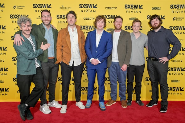 Jared Raab, Matt Greyson, Jay McCarrol, Matt Johnson, Matthew Miller, Robert Upchurch and Curt Lobb at the Nirvanna the Band the Show the Movie premiere at the SXSW Film Festival on March 9, 2025 in Austin.Amanda Stronza/Getty Images