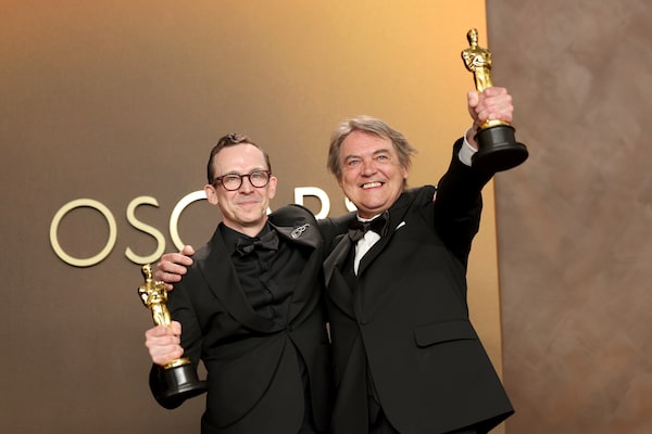 Chris Lavis, left, and Maciek Szczerbowski, winners of the best animated short film for The Girl Who Cried Pearls.Frazer Harrison/Getty Images