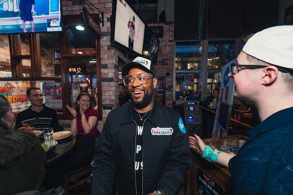 Former Survivor contestant Brice Johnston (centre) hosts a Survivor 50 watch party at MVP Resto-Bar Sportif in Montreal.John Lee/Supplied