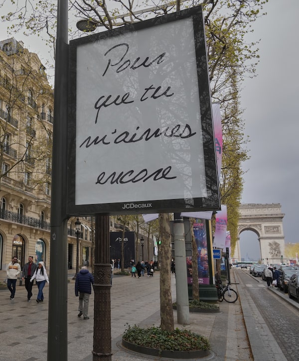 A poster featuring the French title of Dion's song 'If That's What It Takes,' promoting autumn concerts in France on the Champs-Élysées in Paris on Wednesday.Michel Euler/The Associated Press
