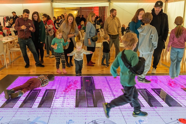 Children play piano at one of seven Chopin fan zones set to commemorate the competition.Anna Liminowicz/The Globe and Mail