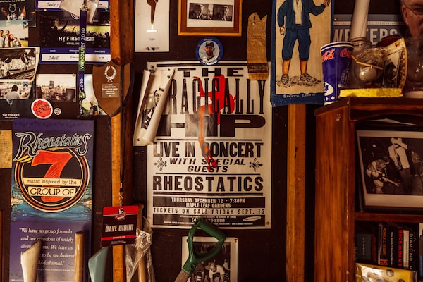 Bidini’s garage is filled with old Rheostatics band and performance posters.JALANI MORGAN/The Globe and Mail