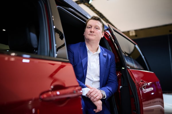 Stellantis Canada CEO Trevor Longley sits in a Canadian-built Chrysler Pacifica minivan at the 2026 Canadian International AutoShow in Toronto on February 12, 2026.Sammy Kogan/The Globe and Mail