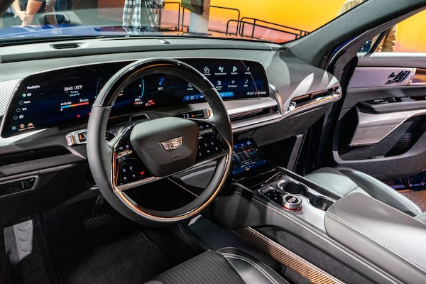 Whether you buy a Vistiq as a family vehicle or just because you like luxury SUVs, you’ll be spoiled for power. Dual electric motors draw energy from a 102-kilowatt-hour battery to produce a total of 615 horsepower and 649 lb-ft of torque. The Vistiq will accelerate from a standstill to 100 kilometres an hour in less than four seconds. “It’s a big car that drives small,” says Cadillac chief engineer Jeff MacDonald. “It’s not a sports car. The goal from the outset was a plush ride character, but it also has to handle well.”