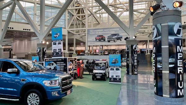 A quiet moment on press day for the electric vehicles at the Imperium Motor Co. booth.Mark Richardson/The Globe and Mail