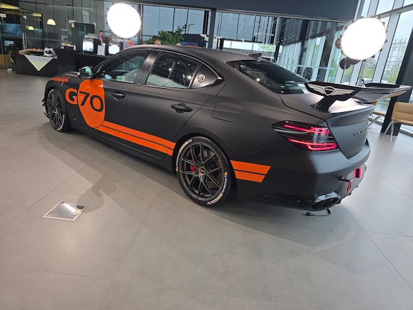 The G70 Track Day Special Concept began its tour of Genesis dealerships in late May in Markham, Ont. It will crisscross the country, eventually visiting nearly all of the 31 Genesis stores, said Genesis Motors Canada director Eric Marshall. Canada is the only country that will see the car, at least for now.