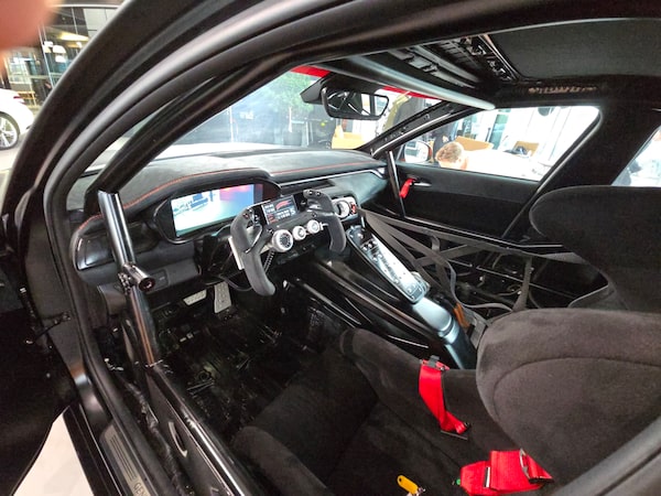 The concept is kitted with a roll cage, racing seat, harness and what look like racecar controls.Emily Atkins/The Globe and Mail