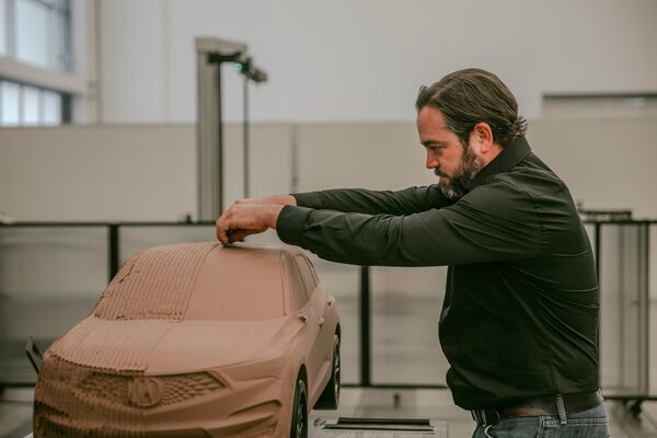 Marek is in charge of this place, a sort of fuel-injected Willy Wonka, clad in asymmetrical Doc Martens. He's quick with a quip, quicker with his marker. Sketching out a sleek coupe on a whiteboard, he transforms it to a crossover with subtle shifts to the roofline and wheels. All the angular corporate design elements are there.