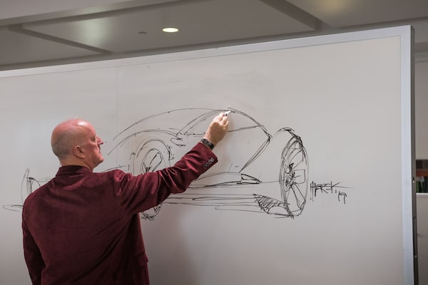 Executive designer Dave Marek sketches a quick idea of some future Acura product freehand. The sketching part is easy, he points out; actually creating a real-world product is the hard part.Brendan McAleer/The Globe and Mail