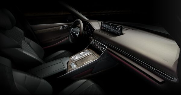 The “V” in GV80 is supposed to stand for “versatile,” and like most other three-row SUVs, all-wheel drive will be standard in Canada. The cabin has a minimalist feel, with a large central touch screen and only a few physical buttons. The transmission is controlled through a rotating electronic gear selector, saving further on interior space.