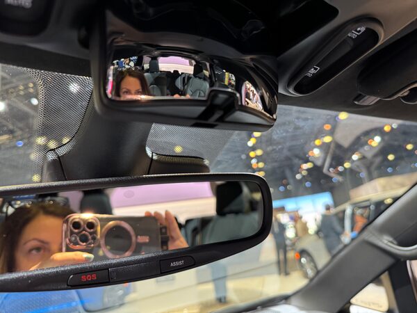 Above the rear-view mirror on 2027 Chrysler Pacifica is another mirror that better shows rear-seat passengers.Petrina Gentile/The Globe and Mail