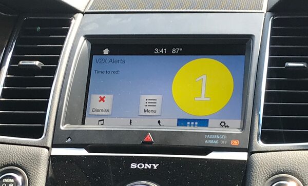 The Taurus also got messages from a traffic signal (a countdown that a light was about to turn amber) and from a pedestrian crossing sign, both equipped with transmitters.