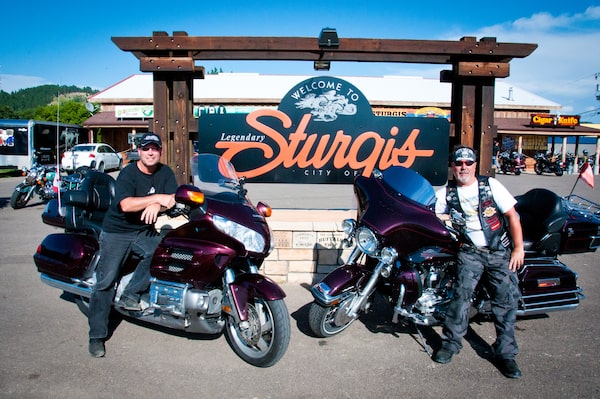 Michael Sinyi, left, on a Honda Gold Wing and Chris Abraham on his Harley in Sturgis, N.D., mecca for motorcycle enthusiasts.Supplied