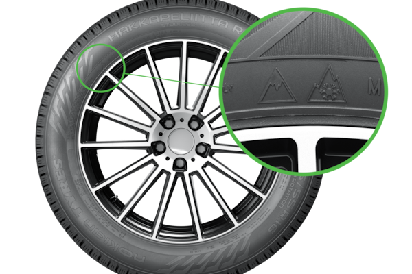 The new Ice Grip Symbol on the sidewall of a Nokian tire next to the three-peak mountain snowflake symbol for winter tires.Courtesy of manufacturer