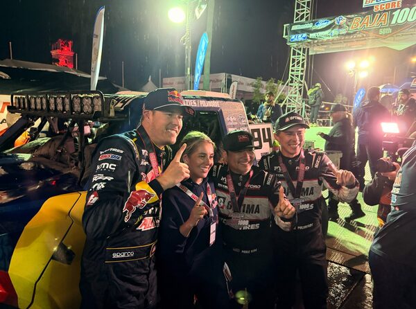 “That’s what Baja does, man, you can never give up. You just put your head down and grind. The rain came in. The dirt was unreal,” Menzies says after taking off his helmet. “It seems like we’re running qualifying pace for 850 miles.”