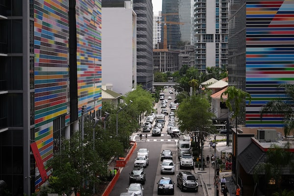 Cars drive through a commercial area, Thursday, April 2, 2026, in the Brickell neighborhood of Miami.Rebecca Blackwell/The Associated Press