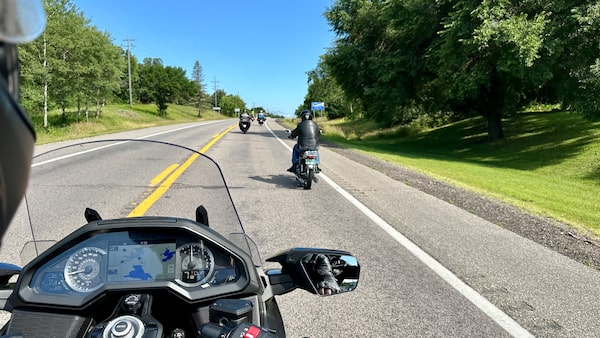 Following behind Jon Kosmoski’s SuperHawk on the Zen ride in Minnesota, seen from the Honda Gold Wing.Mark Richardson/The Globe and Mail