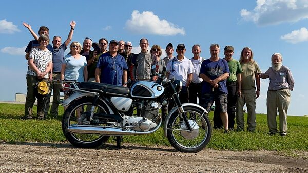 He’s one of the country’s foremost authorities on old Superhawks, which helped when Ben Boyer’s identical 1966 CB77 broke down beside the road just a few hours after leaving Minneapolis, almost at the North Dakota state line. The exhaust worked loose from the cylinder head and needed a new stud and flange. The bike was loaded on the back of a following SUV and carried here to Oakes, N.D., another couple of hours away, where a local machinist worked into the night at his home shop to create a new flange. When he delivered it the next morning, there was no charge. “That’s the kind of person you meet on a trip like this, riding a bike like this,” says Boyer, a retired high school biology teacher from Colorado. “This kind of trip really brings out the best in people.”