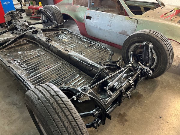 We are back on it now and steadily making progress. The two Pumas I initially purchased were both in dire need of mechanical help, one was salvageable, while the other only usable for parts. In hindsight, I should have a purchased a donor car that was in better mechanical shape. At least when this car is road worthy, I can proudly declare it is completely rebuilt as our shop foreman recently finished an extensive chassis refurbishment. All the floors have been cut out and replaced, new knuckles and front suspension lowering kits installed to give this car a slick, resto-mod look. Every other suspension piece has also been replaced.
