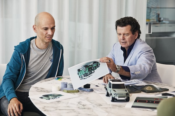 Lego designer Milan Reindl meets with Gerry McGovern, chief creative officer for Land Rover.